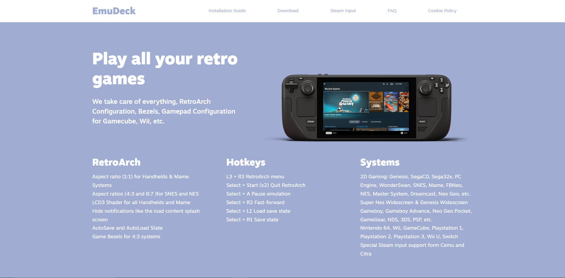 Malgré les centaines de jeux que j’ai dans mes différentes bibliothèques, j’ai voulu voir ce qui était disponible au niveau de l’émulation sur le Steam Deck. Et autant vous dire que je n’étais pas prêt. EmuDeck est une solution juste incroyable ! La grande majorité des consoles "rétro" sont installées et paramétrées pour fonctionner directement sur le SteamDeck. Et ce n’est pas tout, vous attendez toujours une Switch Pro ? Peut-être que le Steam Deck est la solution qu’il vous faut, grâce à l’émulateur Yuzu, vous pouvez emmener votre bibliothèque de jeux Switch sur votre Steam Deck.